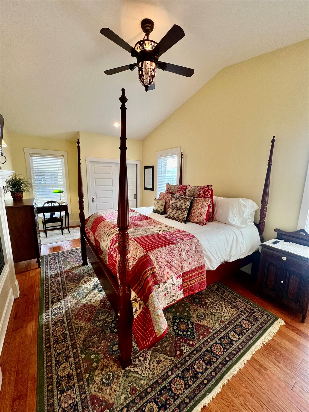 Relax and recharge: Unwind on your private porch with comfortable seating and view the courthouse square from the comfort of your home.